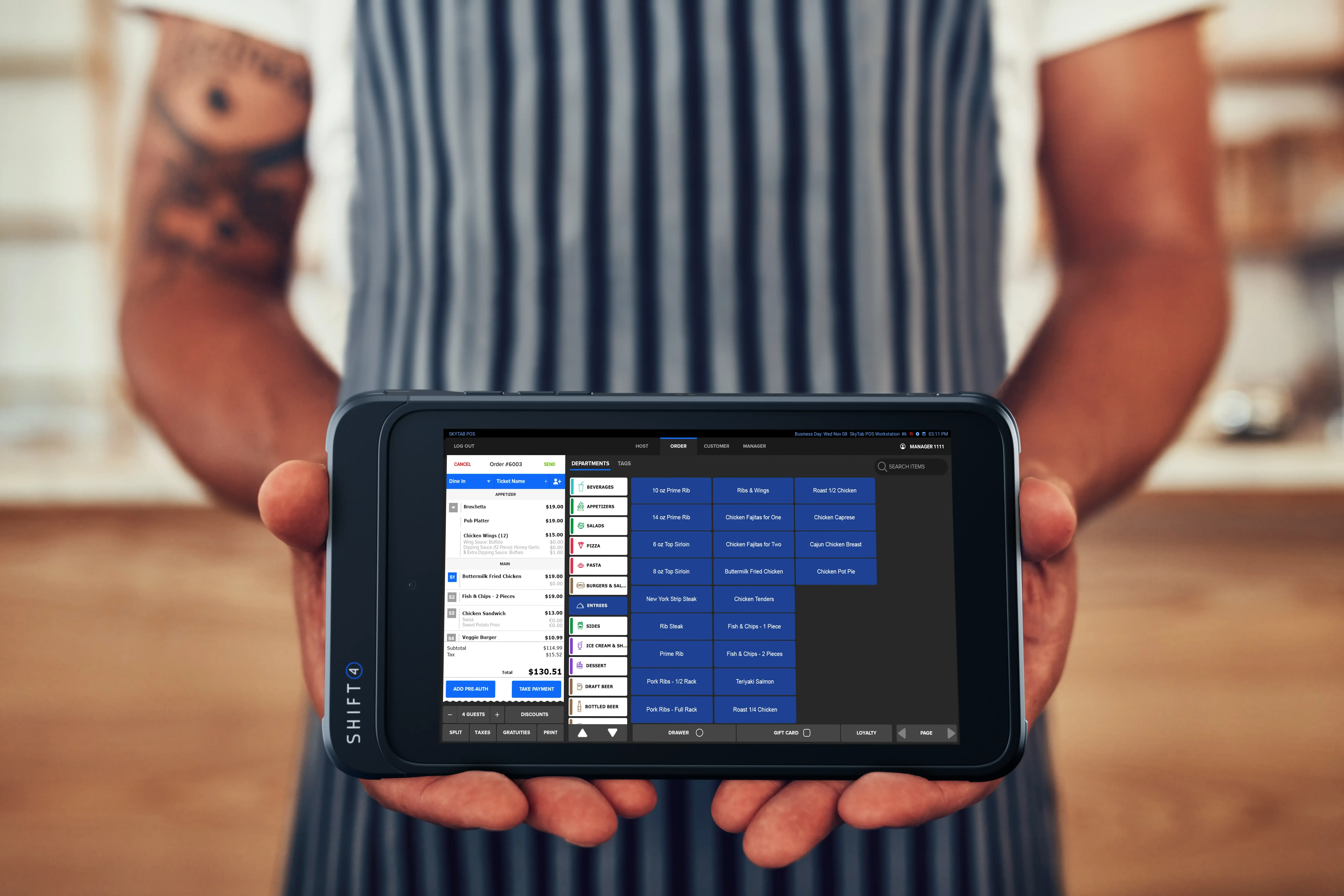 Supercharge your staff. Take orders and payments with a convenient 8” tablet that mirrors your POS workstation interface.